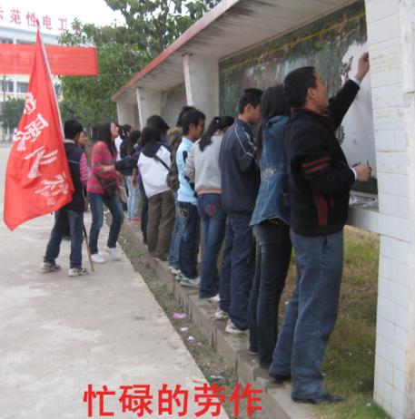 为了贯彻学习党的十七大精神,创建文明校园,整洁校园环境。院爱心社于12月2日下午4:00举行了“青年志愿者行”义务活动。对院内各宣传栏内一些过时海报进行清理。参加此次活动的有爱心社理事会成员以及部分社员。