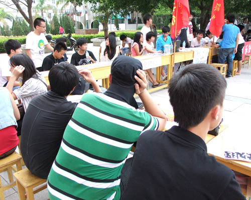 2011年9月27日下午三点,全院26个社团在图书馆广场举行大型集中宣传及纳新活动。社团是校园文化建设的主力军,学生社团其组织的自发性,在大学生个性的张扬和发展、突出潜能的开发和人格的塑造等方面具有独特的优势,为同学们提供了广阔的展示自我的舞台,满足了不同学生不同层次的文化需求。活动受到11级同学广泛关注,现场气氛活跃。