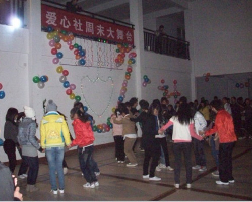 2011年12月9日,为丰富同学们的课外娱乐生活,提高同学们的综合素质,培养积极向上的进取精神,学院爱心社组织举办以“欢送老生”为主题的大型舞会。