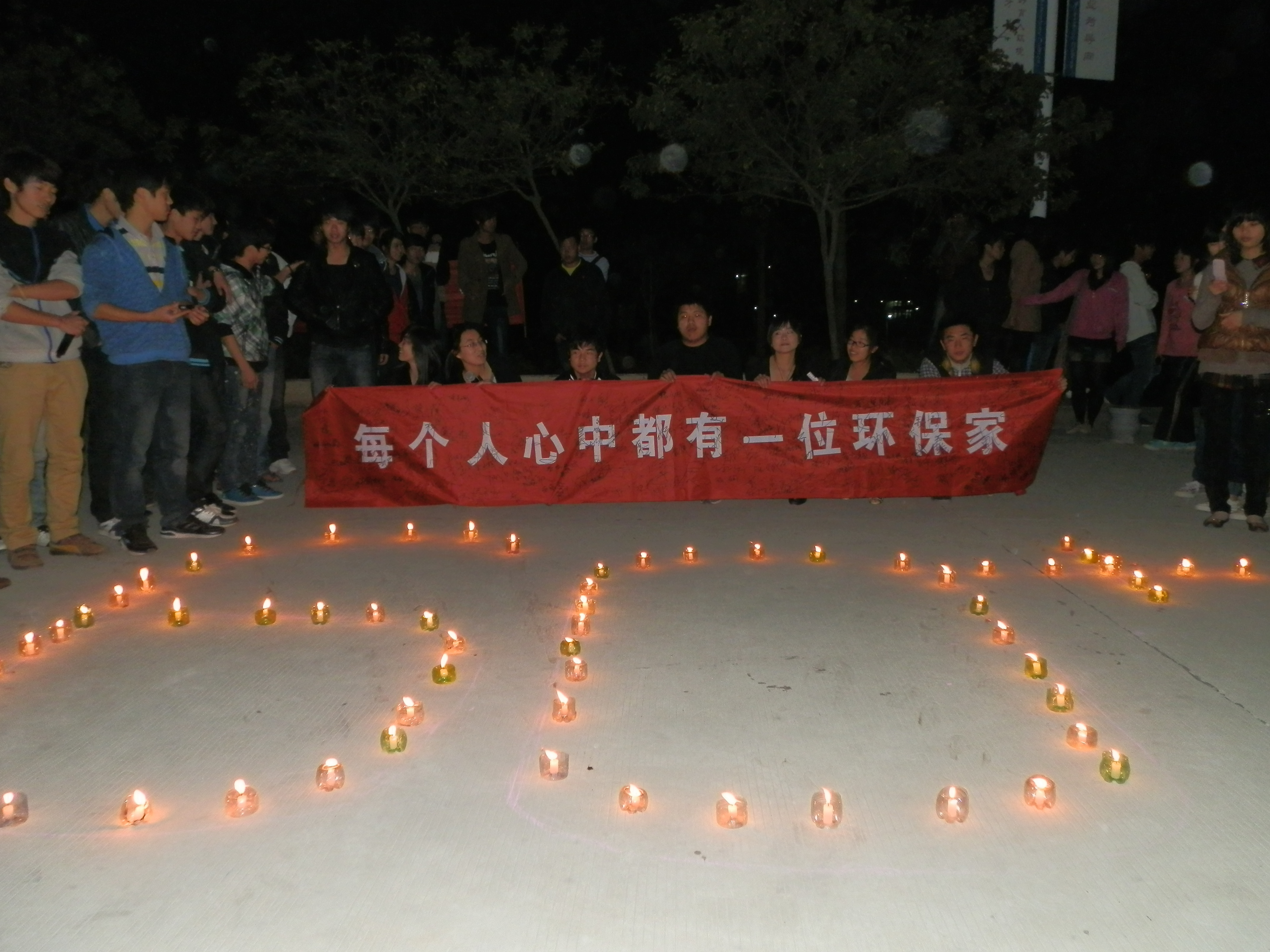 我院爱心社于2012331日在秋实园广场举办了地球一小时活动。通过丰富多彩的活动,让同学了解气候变化给地球带来的威胁,并让同学认识到自己的一个小小动作将会给所居住的环境带来怎样深刻的影响——小小改变可能成就巨大影响,爱心社全体理事会骨干和众多同学都参与到此次活动中。