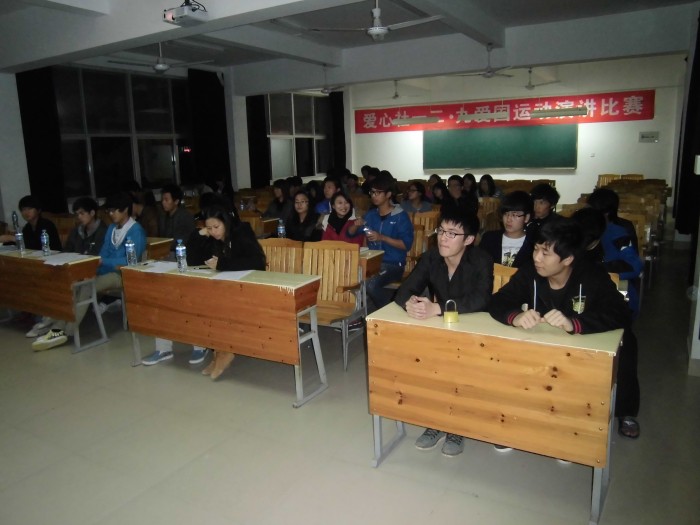 为了继承和发扬爱国主义精神,纪念“12.9学生爱国运动,使学生树立为报效和振兴中华民族而努力学习的远大志向。也为了丰富学生的课余生活,提高学生们的综合素质和综合能力,我院爱心社于2012129日下午15:30,在院机械楼32#102教室内举行了纪念12.9运动,“弘扬爱国精神,尽展青春风采,”主题演讲比赛。本次比赛面向全校学生开展,各班推举一名同学,通过紧张而激烈的初赛胜出十名选手进入决赛。
