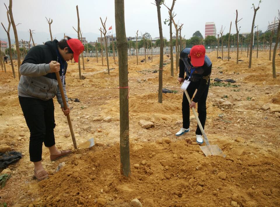 在活动现场,每个社团成员脸上都洋溢着笑容,大家都展现出不同的热情。一个个树坑的挖成,一颗颗树苗的栽下,象征着一份份绿色的希望及每一个人对校园的奉献和爱心。