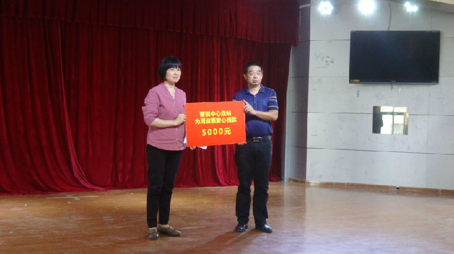 仪式上,学院发出向身患白血病的周淑惠同学捐款的倡议。本次倡议得到了社会各界以及全院师生的响应,团市委、市妇联、市中心血站纷纷通过各自渠道发动捐款,学院爱心基金捐款1万元,在校的师生共捐款6万多元,学院为捐款超过1000元的集体颁发“爱心集体”奖。还有很多师生以及社会各界人士通过微信、支付宝以及银行转帐方式捐款。社会各界及师生的爱心为周淑惠同学带来了战胜病魔的勇气。仪式的最后,黄雅敏副院长提出爱心传递要求,让爱心永不停歇。