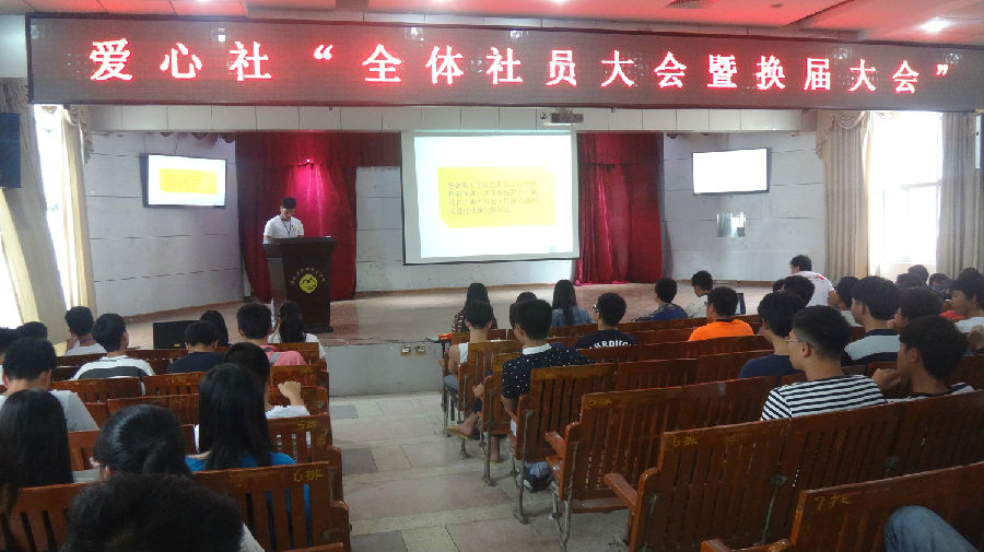 2015年10月20日中午12点半,我院爱心社在17号楼201教室顺利召开了全体社员大会暨换届大会。本次会议由爱心社总监黄伟斌主持。