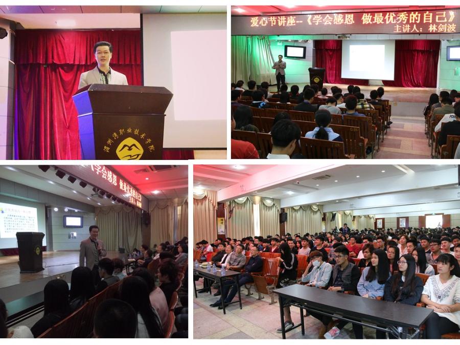 爱心讲座是我院第三届爱心节系列活动之一,旨在对同学们进行爱心教育、感恩教育,使学生胸怀感恩之心,明确感恩是人之美德,向大学生传播奋发向上的精神,让同学们接受一次心灵的洗礼,弘扬正能量,达到了良好的教育效果。