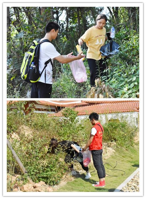 登山过程中,大家精神饱满、斗志昂扬,志愿者们分成好几个小队,认真的搜寻着路边、草丛、树下的垃圾。他们手提垃圾袋,弯腰拾起地上的的垃圾,他们辛勤付出的背影在阳光照耀下形成一道靓丽的风景线。