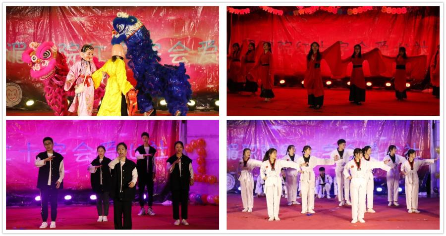 首先以湄园堂的《瑞狮呈祥》开场,憨态可掬的大头娃娃,机灵古怪的舞狮,一下子就将现场的气氛点燃起来,更是令在座的观众们欣赏到舞狮这项中国传统文化表演的魅力。接下来就是由韵品协会带来的舞蹈《礼仪之邦》,表演者一袭红衣,随着现场的音乐声衣袂飘飘,真是婀娜多姿。紧接着的是由爱心社带来的手语表演《遇见》,表演者们用十根手指舞动的姿态向我们传递出了一份温暖。而武术协会带来的节目《We Will rock you》看的现场观众惊呼连连,拍手叫好。中间的抽奖环节更是热火朝天,将现场气氛推向了新的高潮。震撼的节拍奏响热血与激情,独特的动作与创意,这是由街舞社带来的舞蹈《freaky》,还有爱心社新奇独特的追光者(手影)表演,军绿社的《战之必胜》让人看了热血沸腾,引发现场观众的尖叫。青木音乐社声乐部表演的歌曲串烧,歌声婉转悠扬,使大家沉浸其中无法自拔。最后是由动漫社带来的舞蹈表演《lovelive》在辉夜城起舞,翩翩舞姿,给这场晚会画上了一个完美的句号。