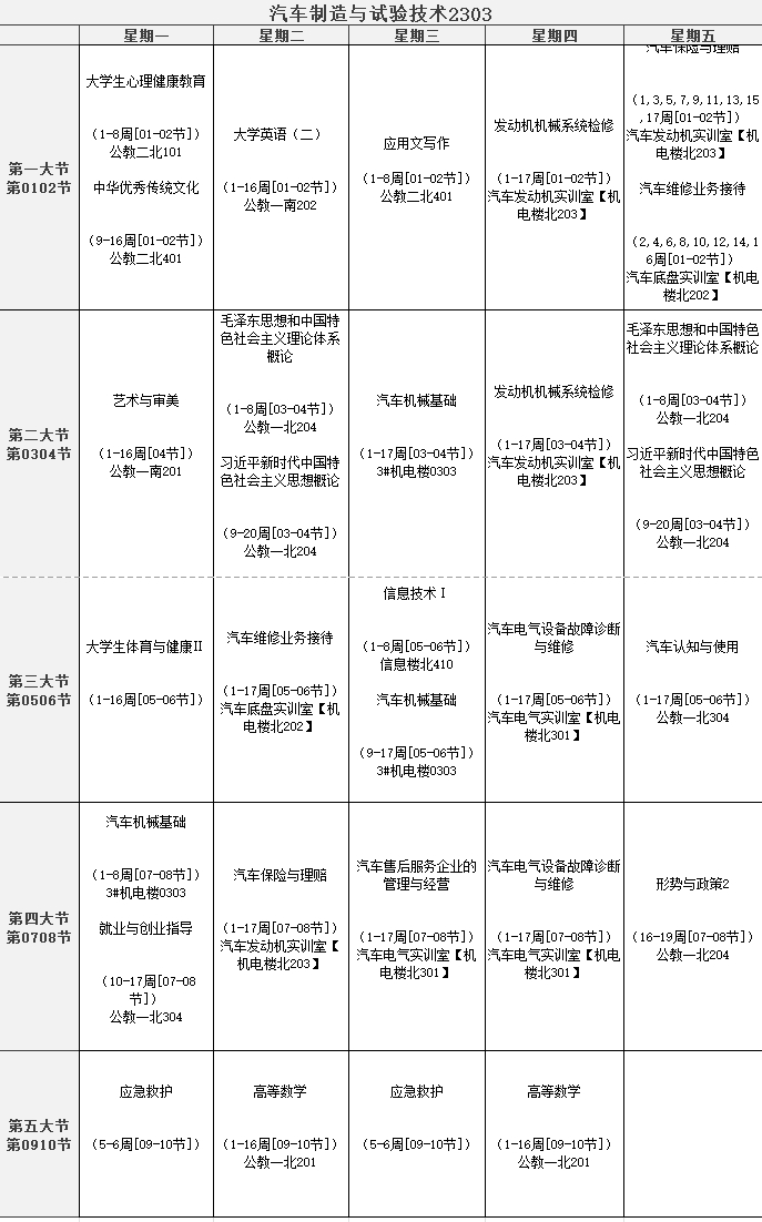 全新的课表也与我们见面