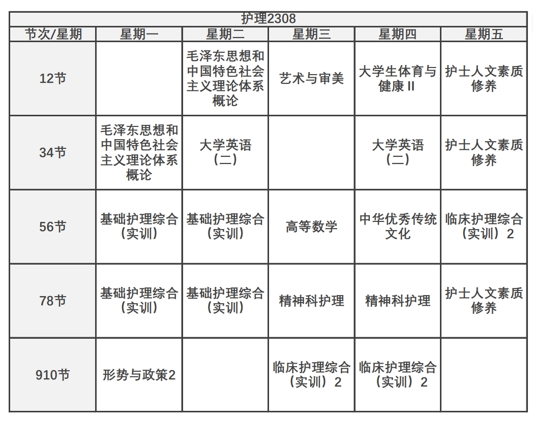 无论你的课表是何种类型