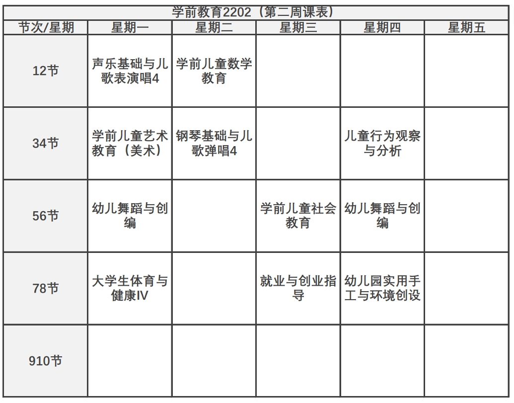 稀稀落落的课表