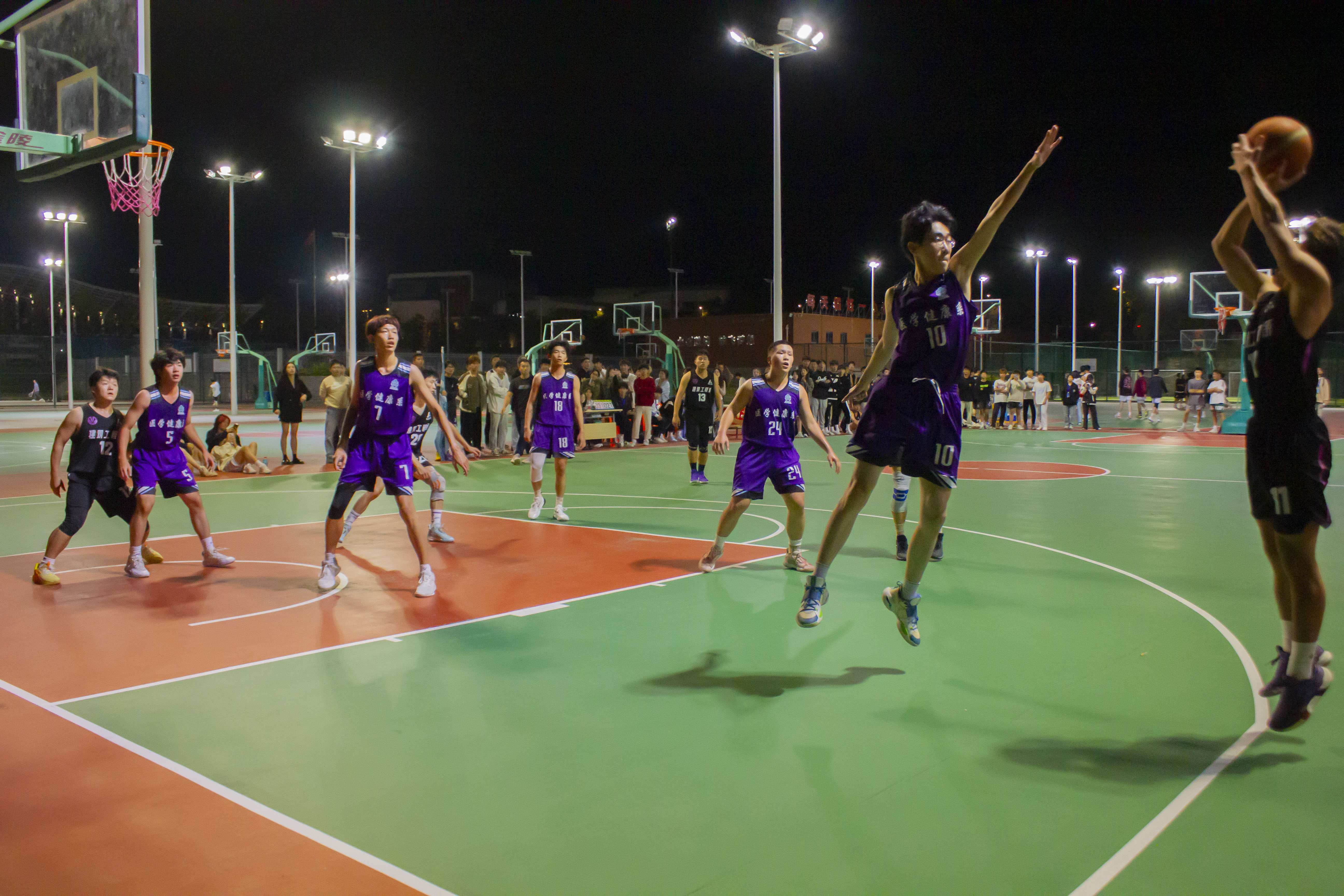 在灯光篮球场展开