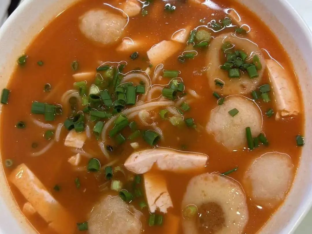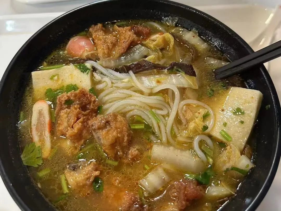 地处闽海之滨,一碗鲜香的沙茶面。花生酱香与沙茶的辣完美融合,汤头浓郁汤色红亮,碱水油面搭配各种好料好吃到掉眉毛。快来跟团团到桂园食堂二楼品尝吧~