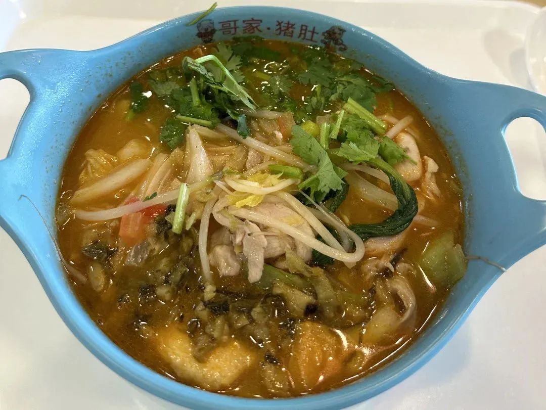 桂园食堂二楼的小锅猪肚鸡,一份酸爽的番茄汤底,鸡肉和猪肚强强联合,打造梦幻般的番茄猪肚鸡。