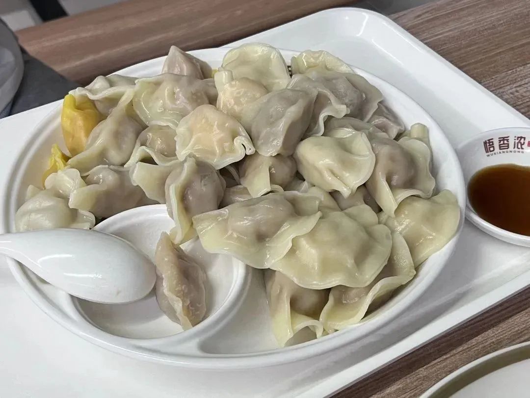 在食堂,饺子的地位毋庸置疑,不光面皮有嚼劲,馅料也是一鲜二嫩三香。出锅时热气腾腾,一大碗热乎乎地吃下去,整个身子都暖了起来。就在荔园食堂二楼,各种味道的饺子让人无从选择。
