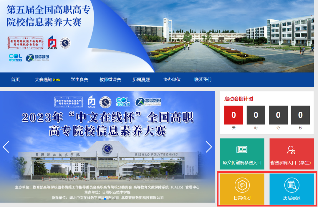 访问比赛官网http://2023ilc.conference.calis.edu.cn/,可进行日常练习或历年真题模拟练习。