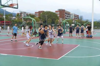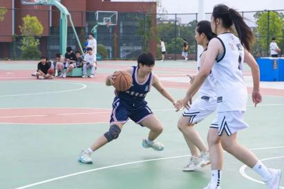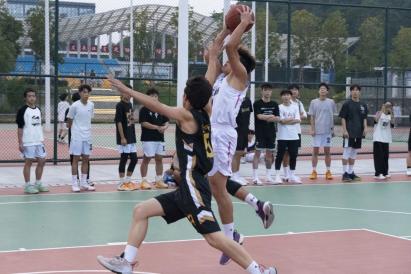 “怦怦”篮球场上回荡的声音似乎在说着:“挥洒青春的汗水很美,但敢闯敢拼的青春更美!”