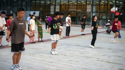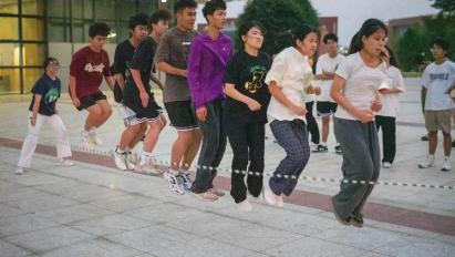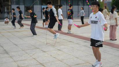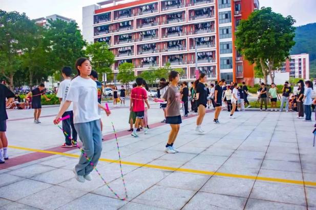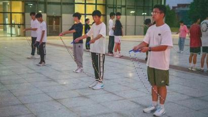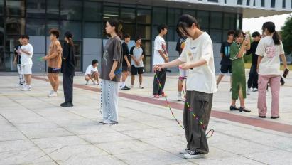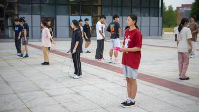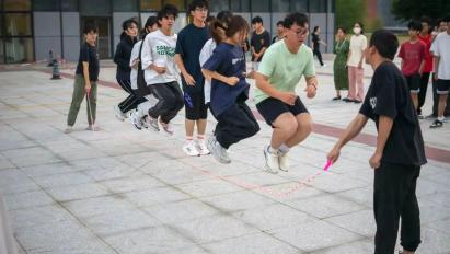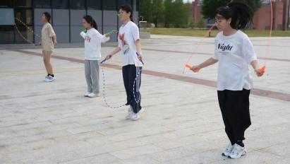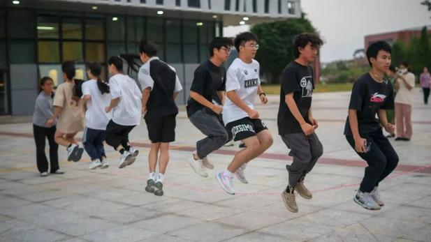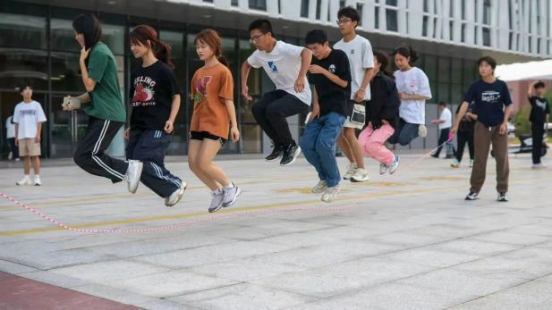 跳动脚步,“绳”舞青春。新生体育节的跳绳比赛环节在图文信息中心前如期举行。