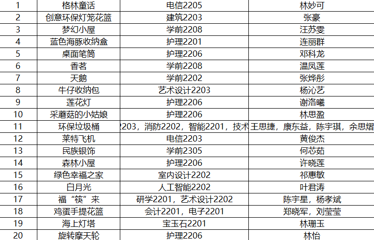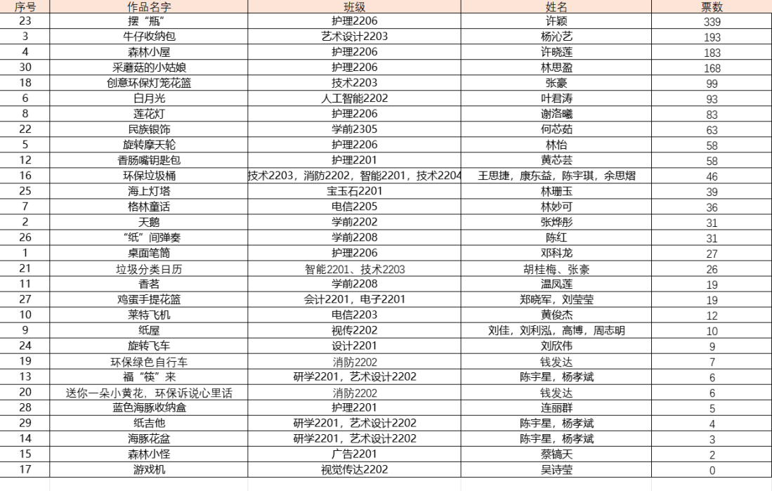 为提高大学生的环保意识,倡导绿色生活理念,关心生态环境保护,共建天蓝、地绿、水清的低碳美丽家园,加强我校学生对绿色环保意识,创造充满活力的校园文化氛围。湄园学子积极参与我院环保社举办的“环保知识竞赛”与“变废为宝”活动,现将获奖名单公示如下:
