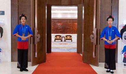 “帆船头,大海衫,红黑裤子寄平安”。经过为期一个月的严格培训,各小组分工明确,压实责任,确保责任到人、工作到位。活动中,志愿者们指挥交通,维护停车场秩序,做好现场的安保工作。在主会场,井然有序地引导各位嘉宾入场,各个环节衔接有序,他们热情接待来宾,引来诸多外国友人关注。