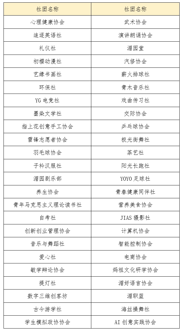 学生社团名单