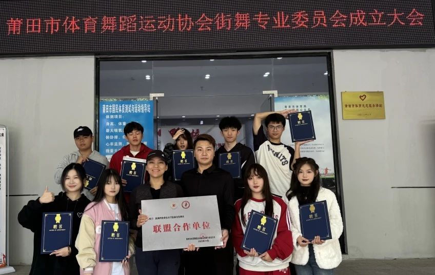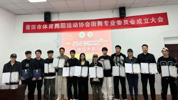 2023年11月21日星期二,莆田市体育舞蹈运动协会街舞专业委员会成立大会于莆田市体育中心顺利举办,我院学生社团极光街舞社受邀前往参加。