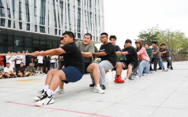 随着裁判员的一声令下,参赛选手们瞬间身体向后仰纷纷进入状态,握紧绳子,目光坚毅,双手紧握麻绳,双脚抓地扎好马步,重心下移,为自己的队伍拼尽全力,红色标志在两队之间来回移动,把比赛推向一个又一个高潮,仿佛每一分、每一秒都是一场战斗,他们将个人与团队的力量发挥得淋漓尽致。
