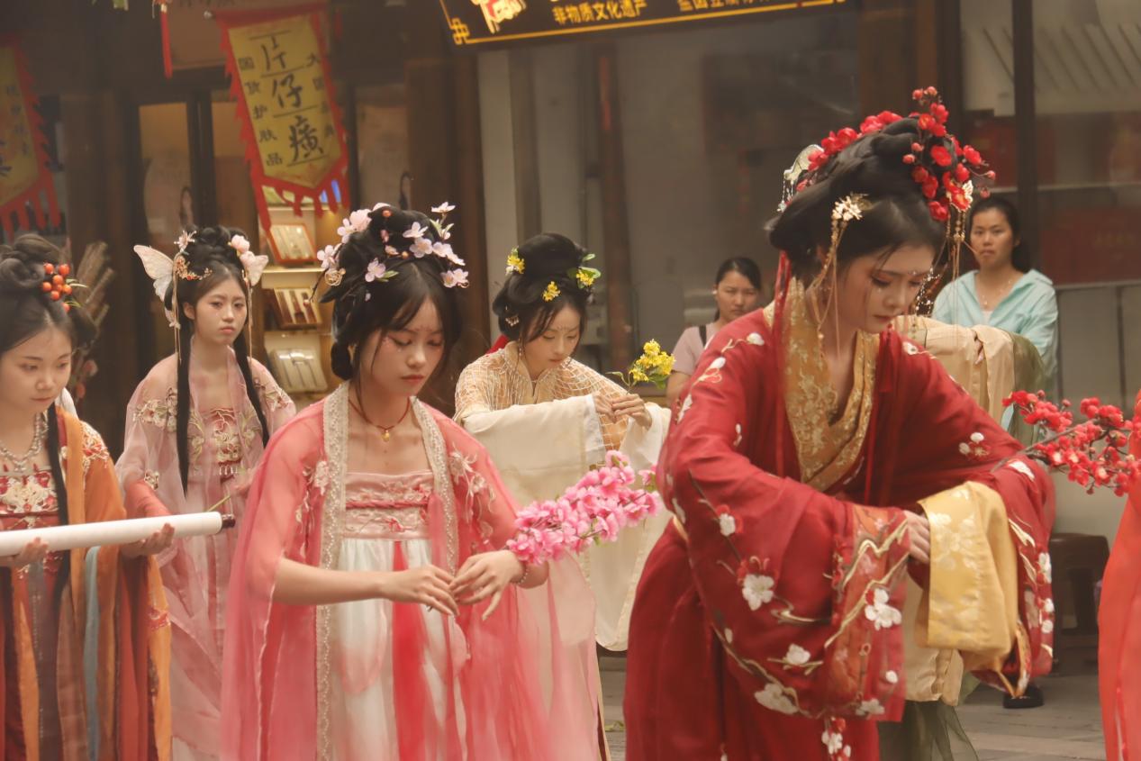 丰富多彩的庆祝活动和深厚的文化底蕴,吸引了众多市民和游客的热烈参与。活动现场,弥漫着馥郁花香,随处可见头戴簪花、身着汉服的年轻人拍照打卡。