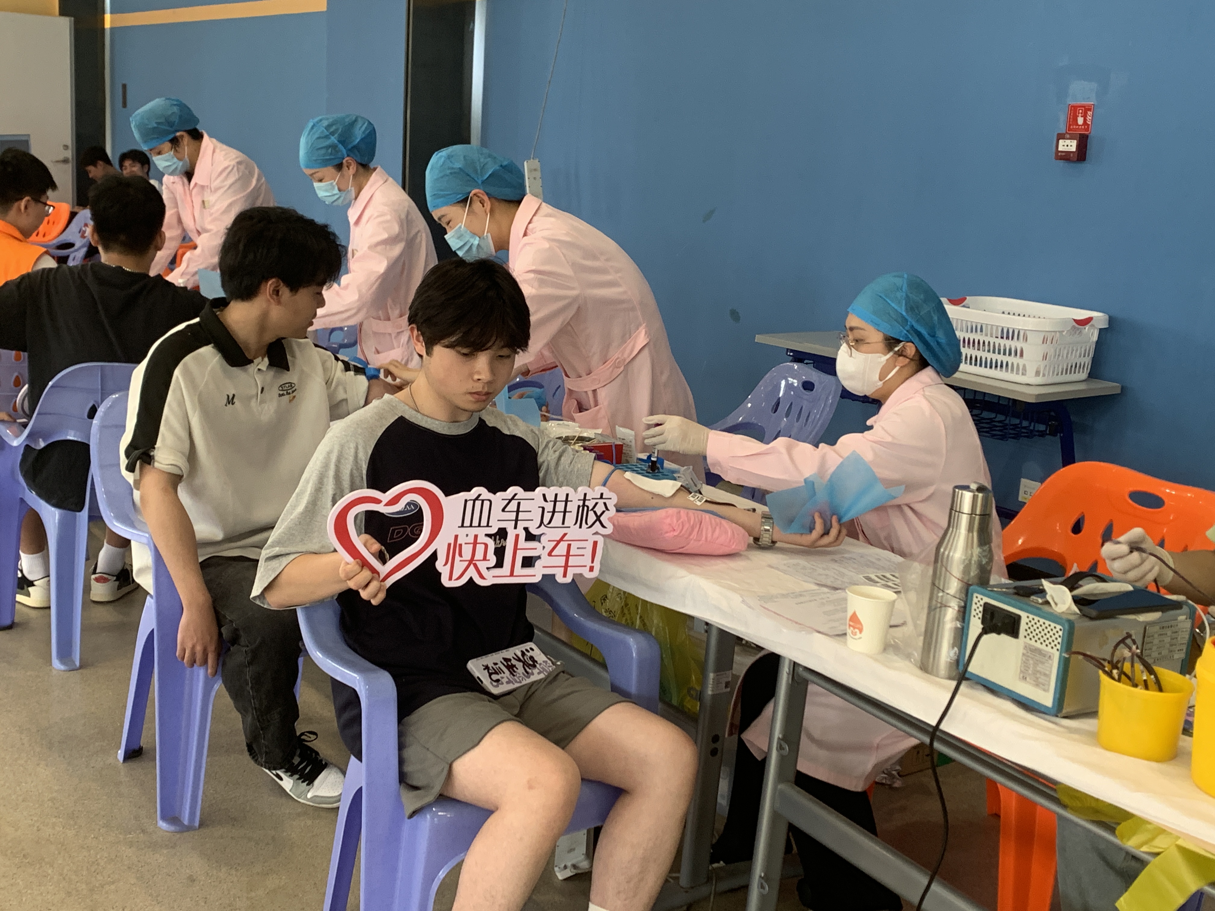 “用你的热血,为生命加油助力”无偿献血活动于4月16日下午两点在体育馆一楼开始。