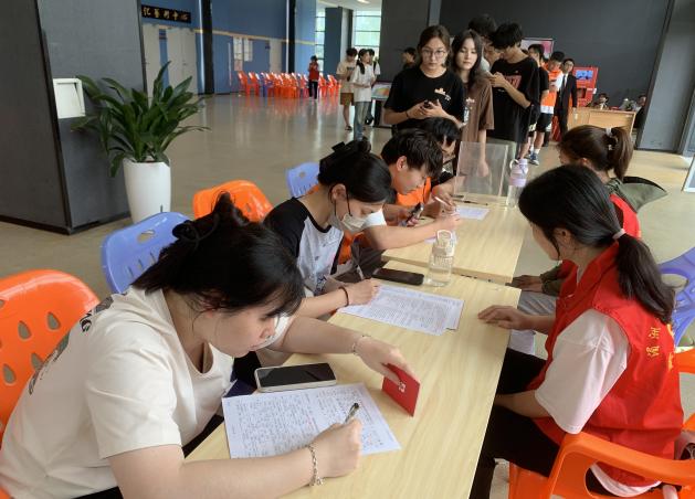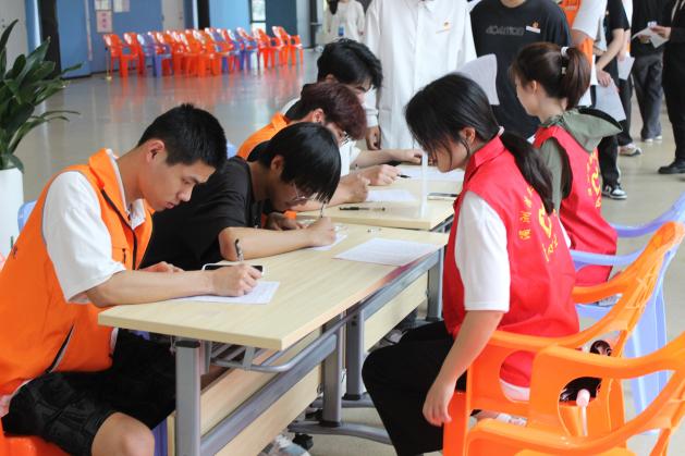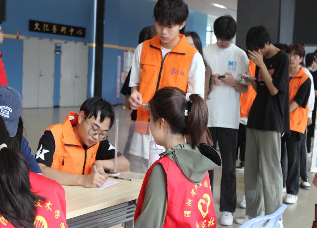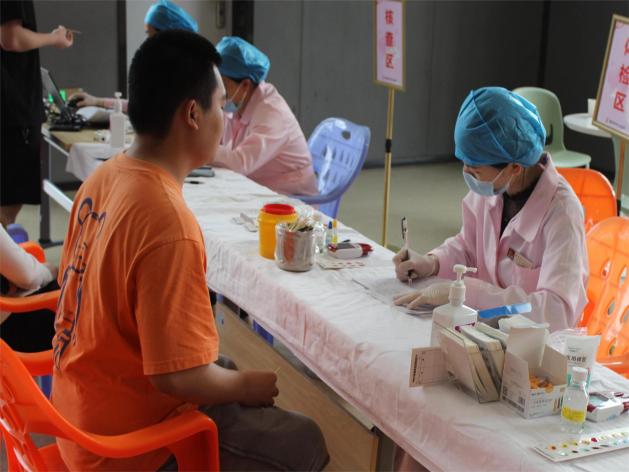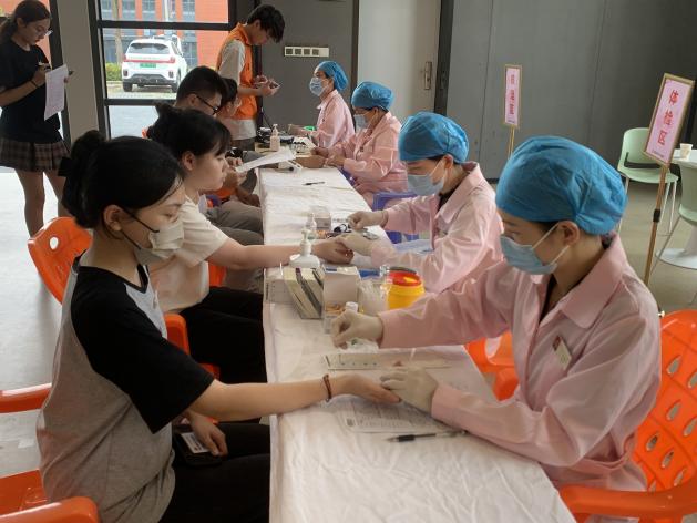 湄园师生纷纷挽起袖子,伸出臂膀,用自己的热血诠释着大爱无疆的精神。并在医护人员的指导下有序地排队填表、验血、采血,整个过程井然有序。