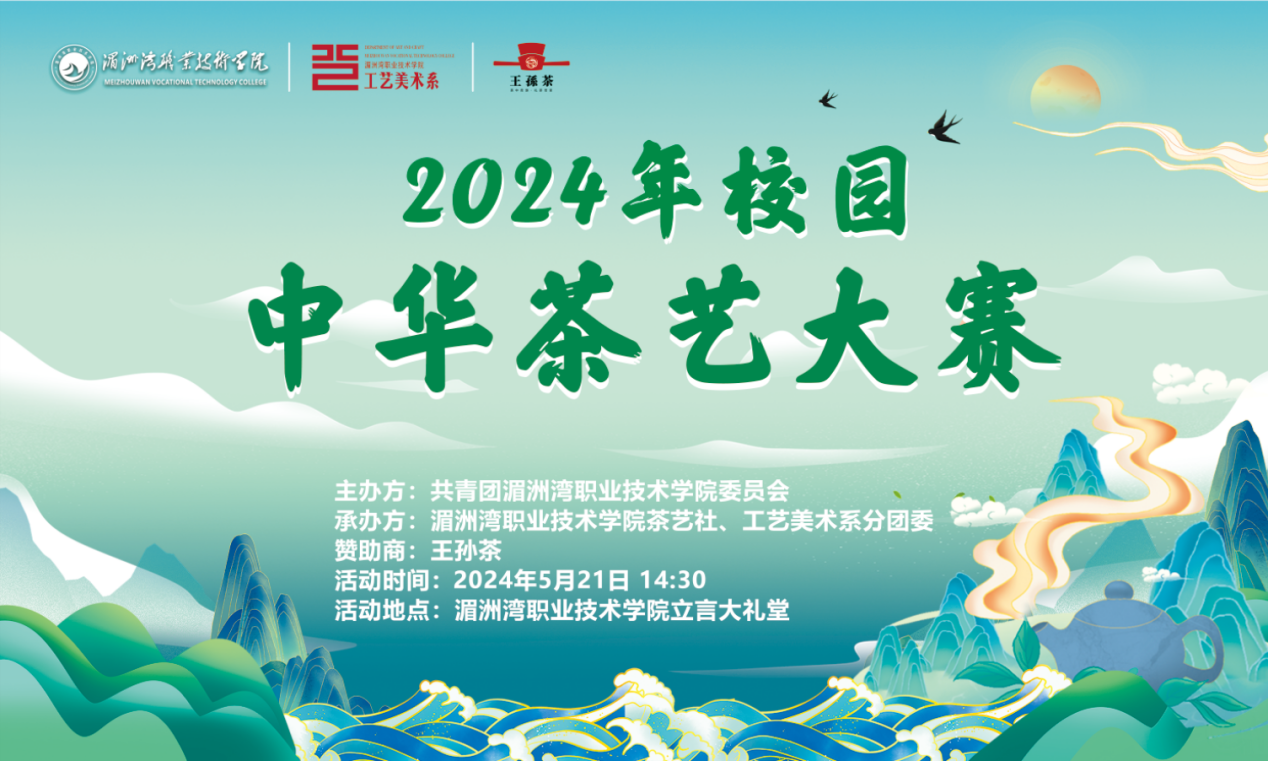 2024年第二届校园中华茶艺大赛自3月底正式开始,历经理论初赛、规定茶艺复赛、终于迎来创新茶艺决赛。我院将在2024年5月21日下午14:30分在湄职院立言大礼堂举行“以茶载道,香满湄园”中华茶艺技能大赛决赛创新茶艺赛项,感兴趣的茶艺爱好者可以前来观看,也可以关注湄洲湾职业技术学院团委公众号观看线上直播,更有抽奖环节,丰厚的小礼品等着大家!