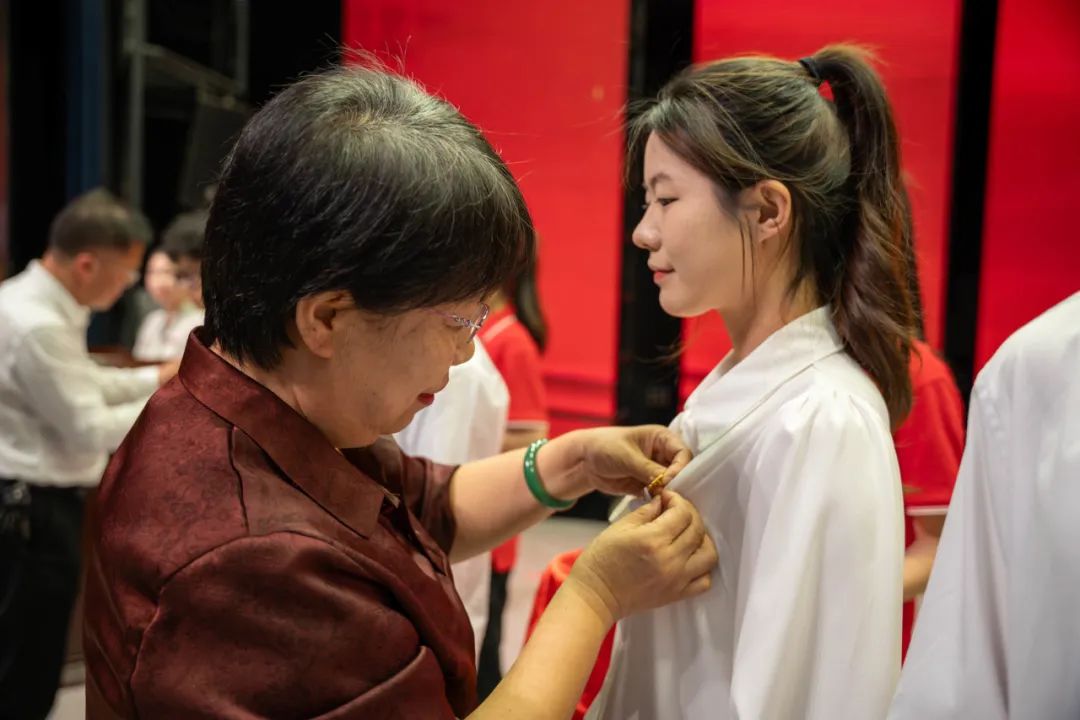 学院院长许冬红、党委副书记林新钊、纪委书记张凡为新团员代表佩戴团徽,并颁发团员证。