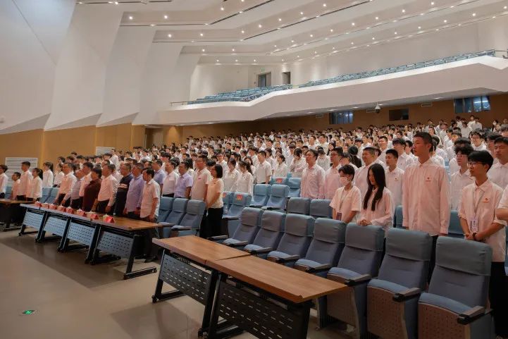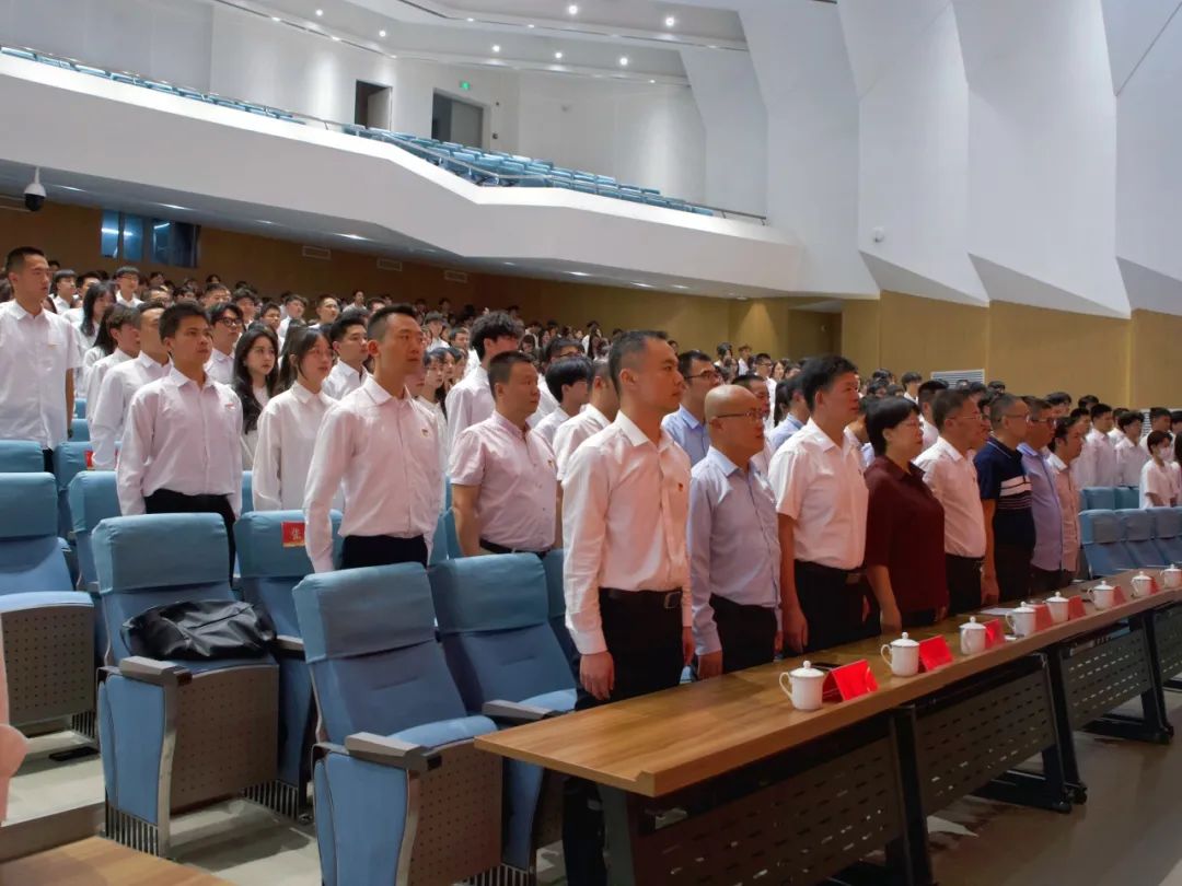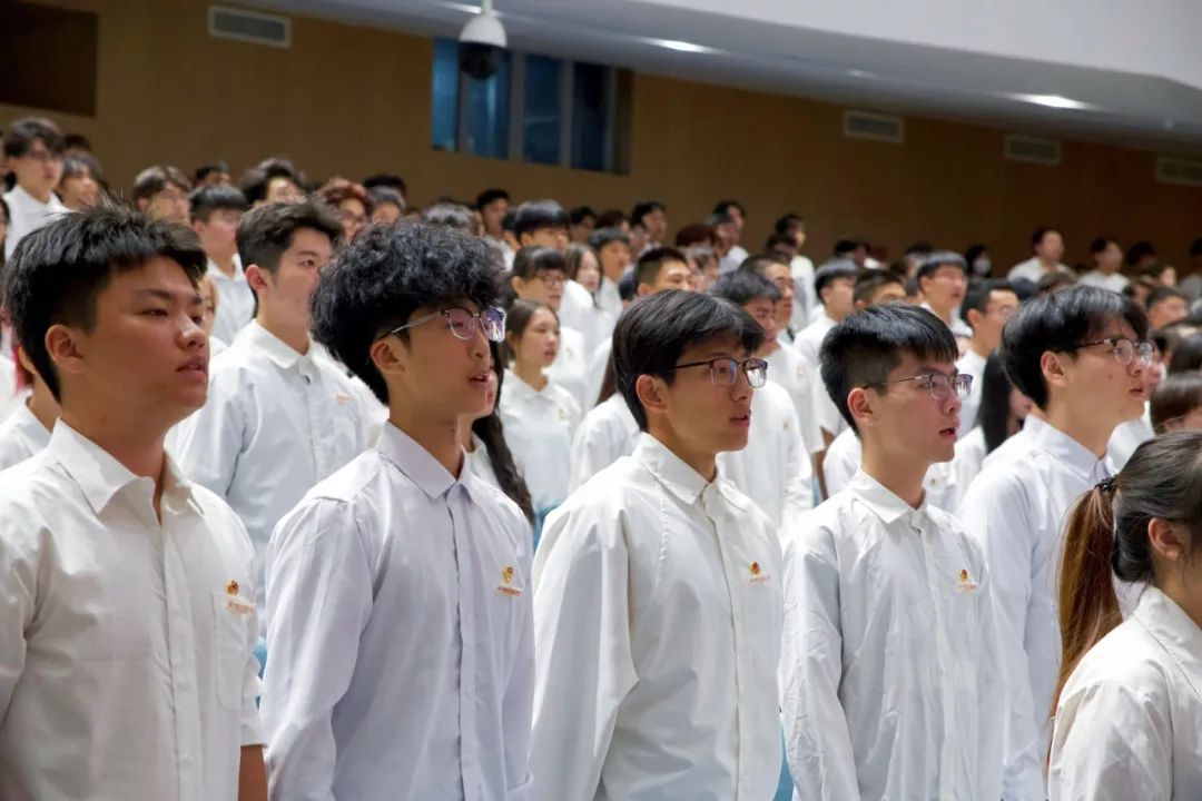 歌唱祖国,乐章奏响,全体师生肃然起立,国歌的旋律在礼堂回荡,新团员的热情与决心被点燃。让每个音符都跃动在奏唱国歌的时刻,感受那份对祖国的热爱和敬仰。用歌声传递情感,用旋律凝聚力量。