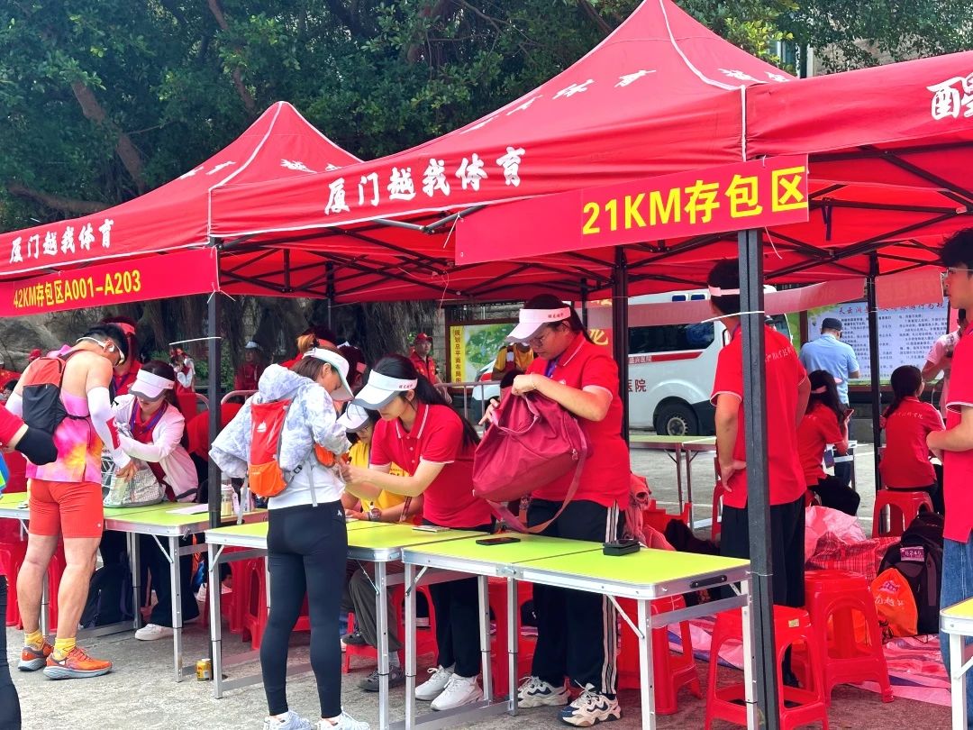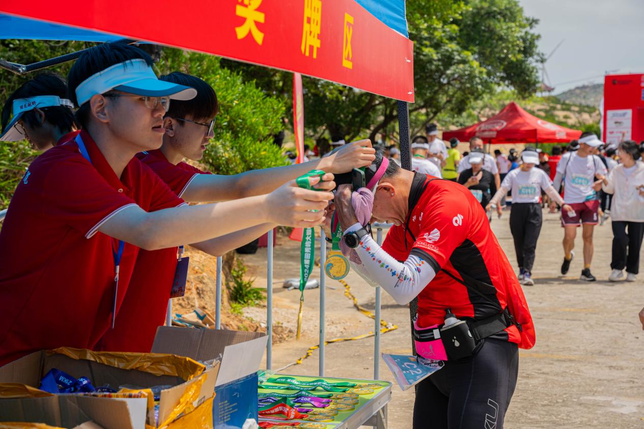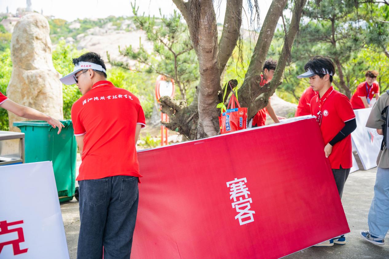比赛开始,湄园青年志愿者负责赛事的多个重要环节。补给站内,志愿者们及时为选手提供餐食、饮品,及时补充体力;存包区里,他们细心耐心登记选手行李包裹,让选手安心参赛;主舞台上,随时为节目提供保障。在终点,湄园青年志愿者迎接选手的归来,为他们送上祝贺和鼓励。他们记录下选手的成绩,为选手颁发奖牌,让选手们感受到比赛的荣誉和喜悦。比赛过程中,他们不仅迅速准确地完成了各项任务,还积极与参赛选手互动,为他们加油鼓劲,选手们纷纷表示:湄园青年志愿者的热情和贴心服务让他们感受到了亲切的温暖。