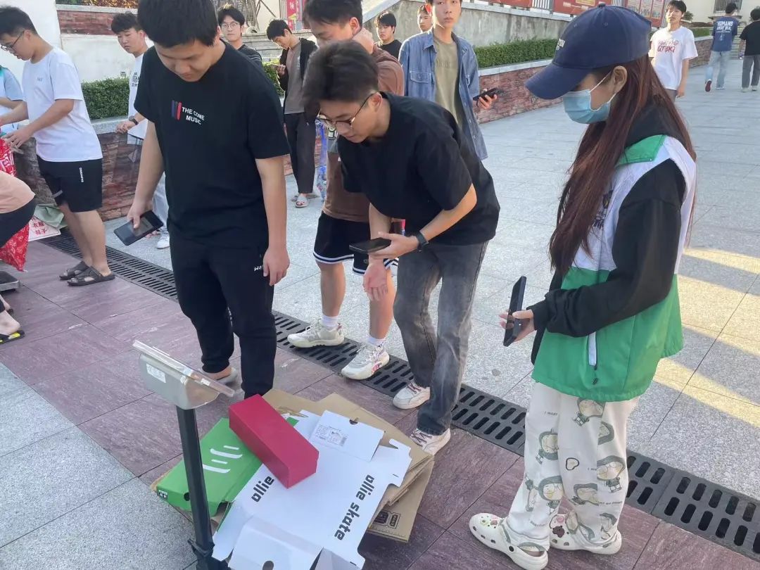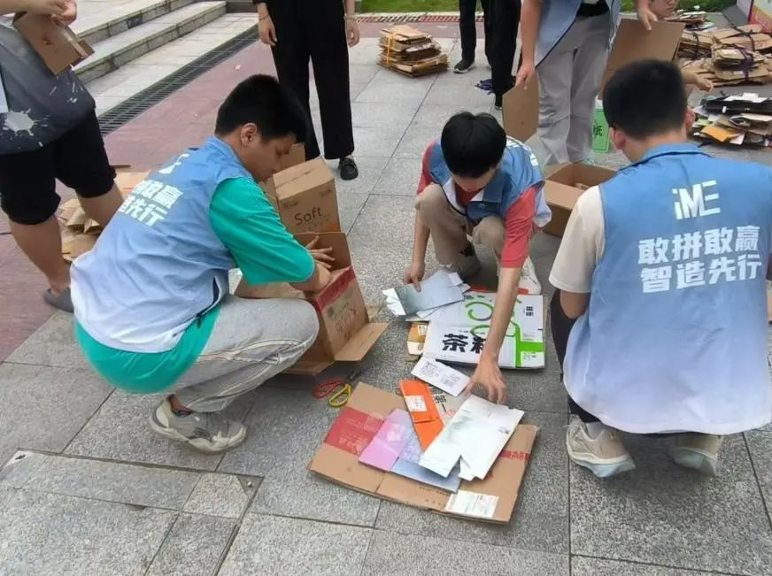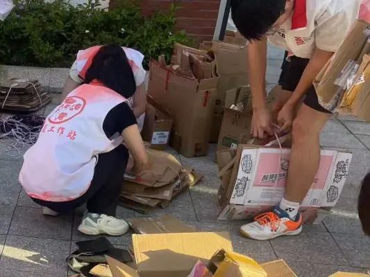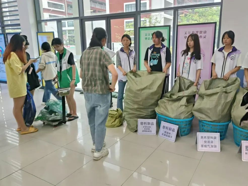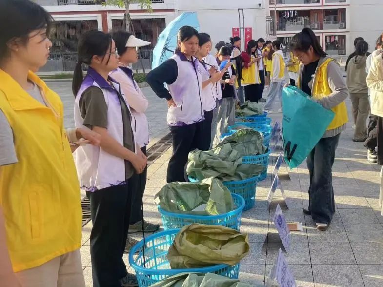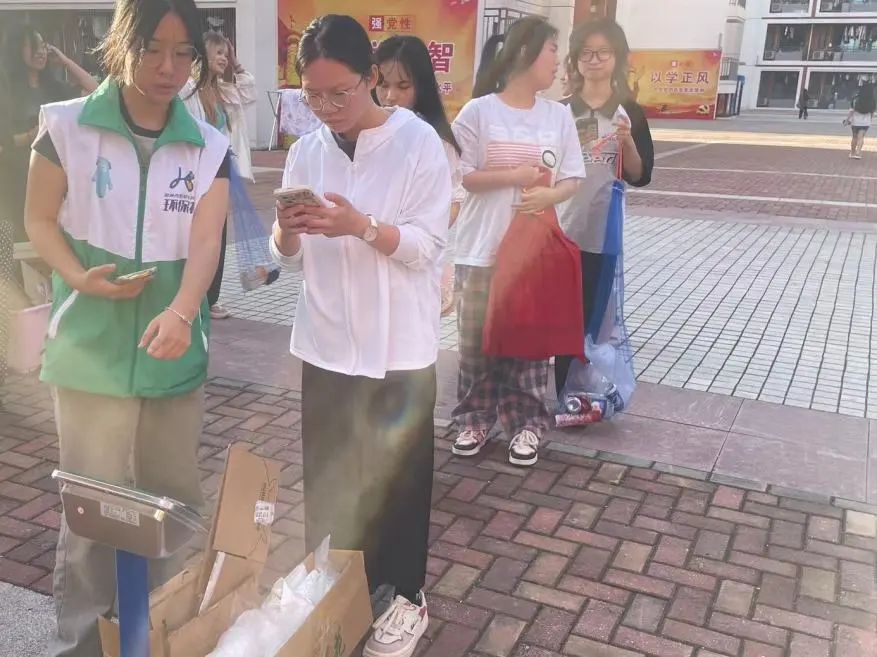 活动现场志愿者们耐心讲解垃圾分类有关知识,给学生现场微信扫码登记。在现场,同学们将冲洗好的饮料瓶踩扁,盖子和瓶身分开,快递盒摊开折平,快递信息撕掉,再拿下来。志愿者有条不紊地对垃圾进行分类、包装、捆绑,并积极引导同学们正确投放不同的垃圾类别。