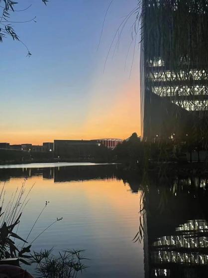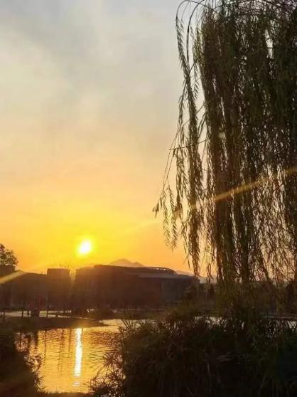 洒在教学楼的窗户上反射出耀眼的光芒