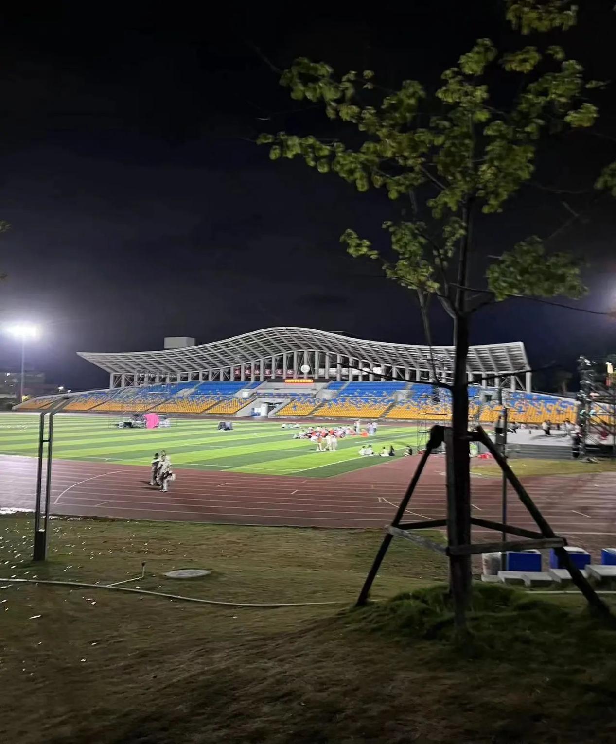 好友相伴夜晚的操场要用惬意来形容