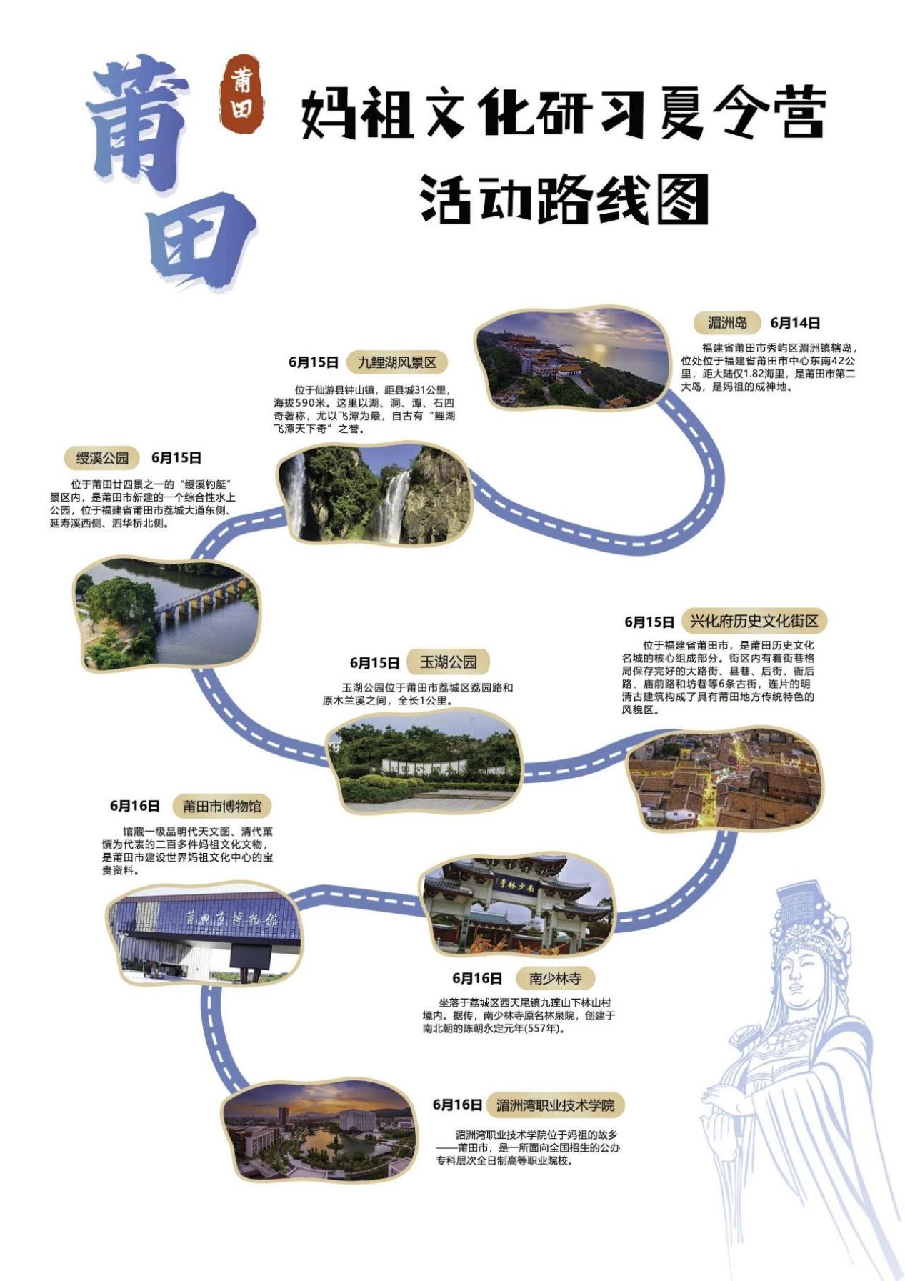 以“中华妈祖情 两岸一家亲”为主题的第十六届海峡论坛·妈祖文化活动周即将启幕,我院承办的2024年海峡两岸师生妈祖文化研习夏令营将围绕“同结妈祖缘·共叙中华情”主题,开启为期3天的研习之行。