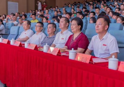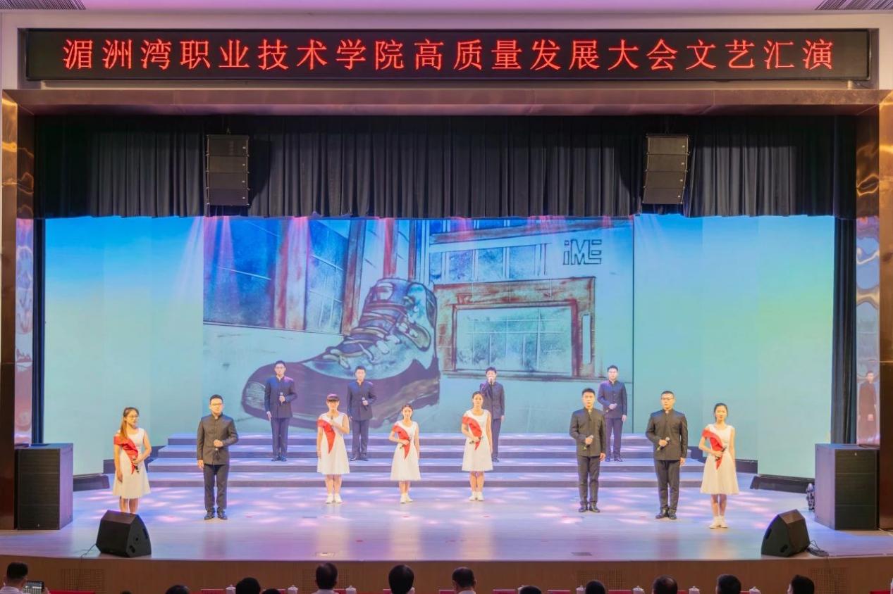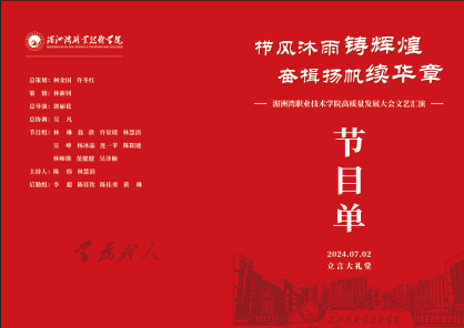 2024 年 7 月 2 日晚,湄洲湾职业技术学院“栉风沐雨铸辉煌 奋楫扬帆续华章”高质量发展大会文艺汇演在立言大礼堂盛大举行。中国黄金协会党委委员、副秘书长刘艳红,闽西职业技术学院党委书记卢伟耀、福建农业职业技术学院副院长侯志宏,学院领导柯金国、许冬红、林新钊、陈金毓、阮春高、张凡、兰希红,以及校友代表、师生代表参加。