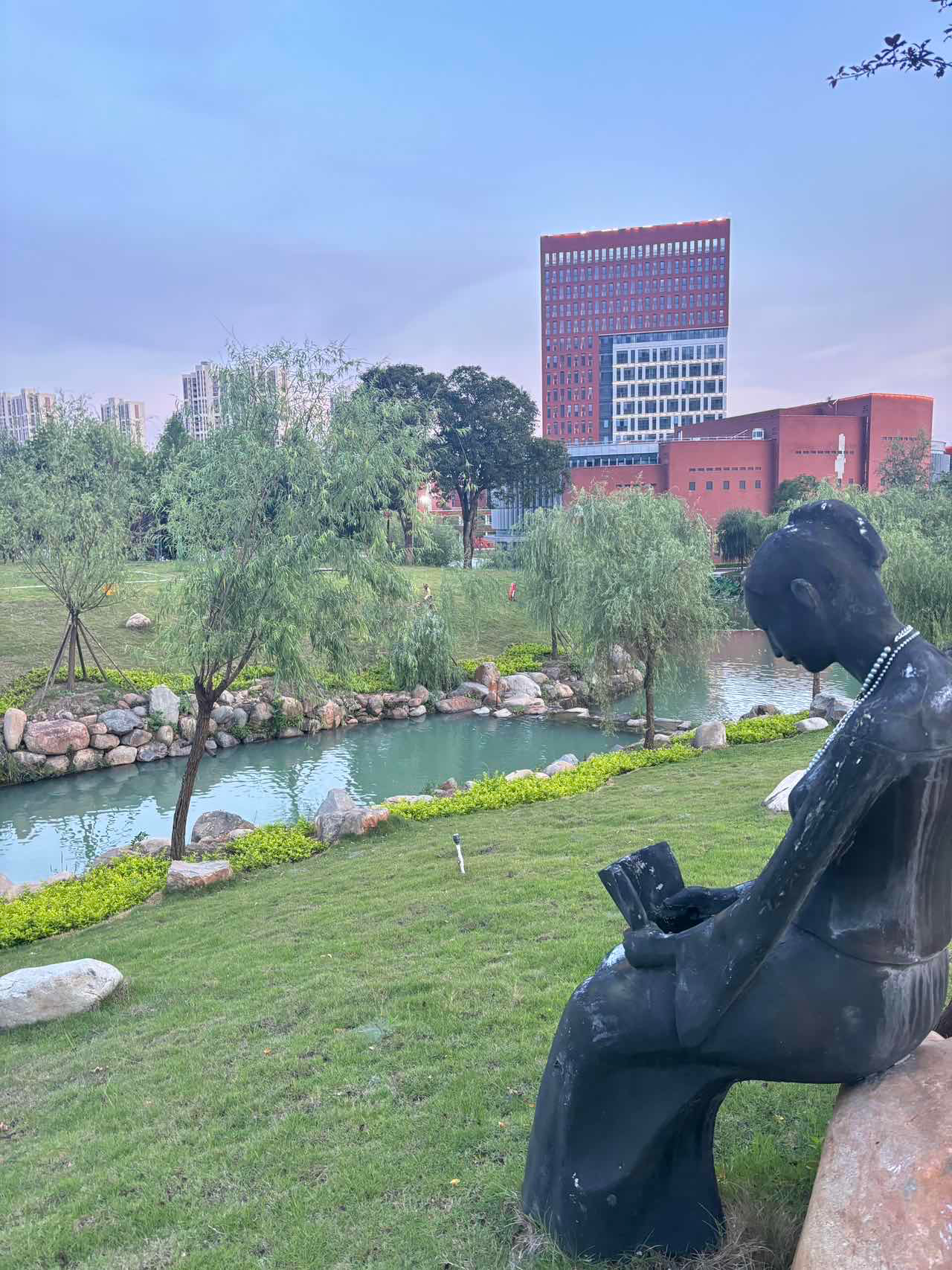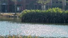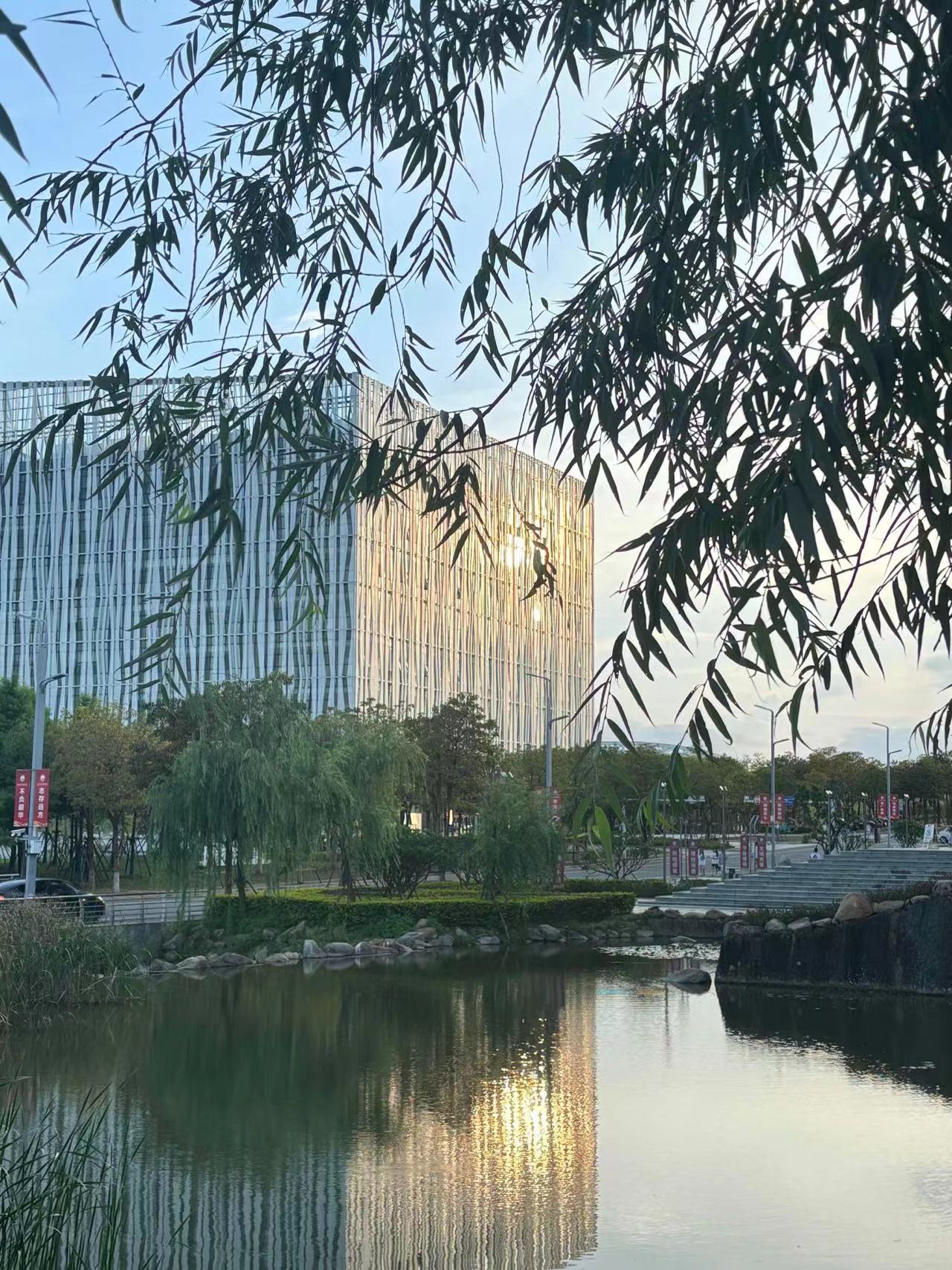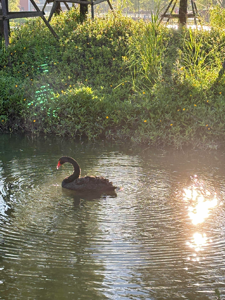 再往前看些,碧蓝的天,浮光跃金,静影沉璧。波光粼粼的叠翠湖面泛起涟漪,黑天鹅悠闲自在,不知道是否怀念学子和学子们的投喂。