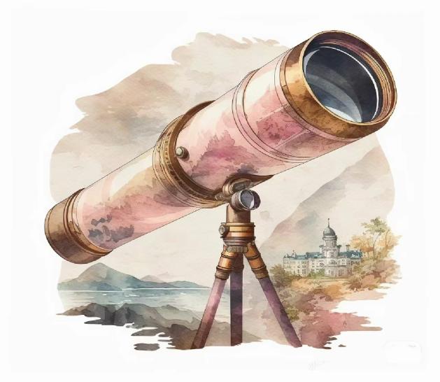最后,望远镜是大学给你的未来展望镜。它让你站在更高的角度,眺望远方,看到更广阔的世界。在这面镜子前,你设定了梦想和目标,规划了未来的方向。它鼓励你勇敢追求,不畏艰难,因为你知道,只要心中有光,就能照亮前行的路!