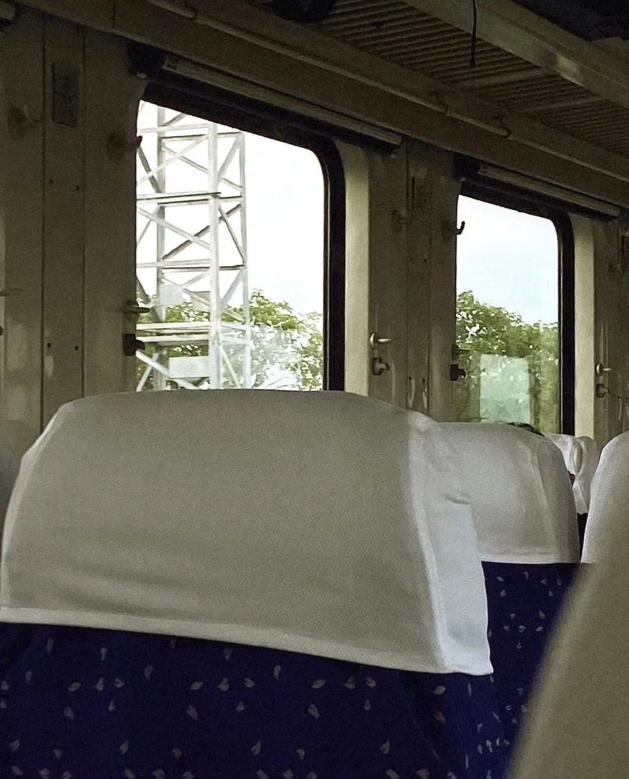 慢慢驶过的城市边缘,车厢内偶尔被火车轨道的大灯闪烁。在第几个分钟后频频出现而后又长时间地没入黑暗,吱呀作响的火车声伴着不时的轰鸣,绿皮火车像摇篮一样把人拥入怀中。