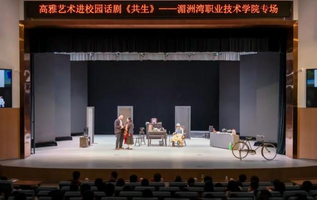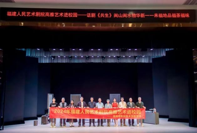 为加强和改进学校美育工作,提高学生审美和人文素养,推动校园文化建设与美育工作融合创新,9月13日下午,福建省2024年“高雅艺术进校园”活动湄洲湾职业技术学院专场在立言大礼堂举行。本场活动由湄洲湾职业技术学院党委主办,共青团湄洲湾职业技术学院委员会承办,学院党委副书记林新钊、副院长阮春高及各院系、部门负责人与800余名师生共同观看由福建人民艺术剧院演出的话剧《共生》。