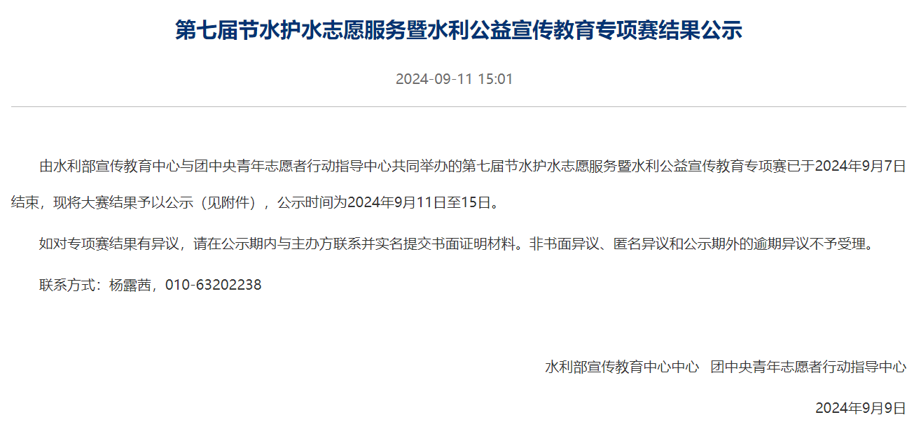 第七届节水护水志愿服务暨水利公益宣传教育专项赛公示结果