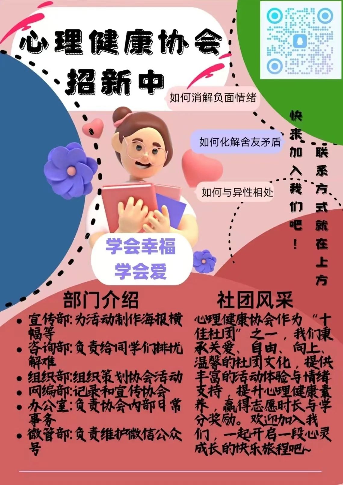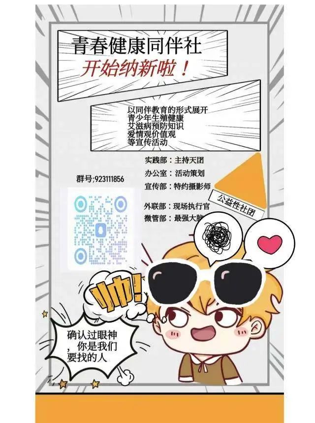 青春健康同伴社,携手共筑健康梦!一个充满活力的社团,在这里,我们不仅是朋友,更是彼此成长道路上的同行者。我们相信,青春不仅是一段时光,更是一种态度,一种追求健康、积极、向上的生活方式。加入我们,一起探索青春的无限可能,无论是身心健康的小知识,还是生活中的小确幸,我们都会一起分享、一起成长。让我们的青春,在同伴的陪伴下,绽放出最灿烂的光彩!快来加入我们吧!