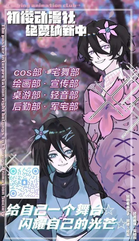 初樱动漫社成立至今已有十三年历史,内有COS部,宅游部,宅舞部,后勤部,绘画部,轻音部,后勤部,宣发部,军宅部,供大家选择。同时社团内部还会不定期的组织团建,各种活动超多!同好超多!想去漫展甚至可以一组团去!想交朋友想学技术的话!那就来初樱动漫社吧!在这里你可以畅谈你的所爱!我们欢迎各位到来,在人生的舞台上大放异彩!