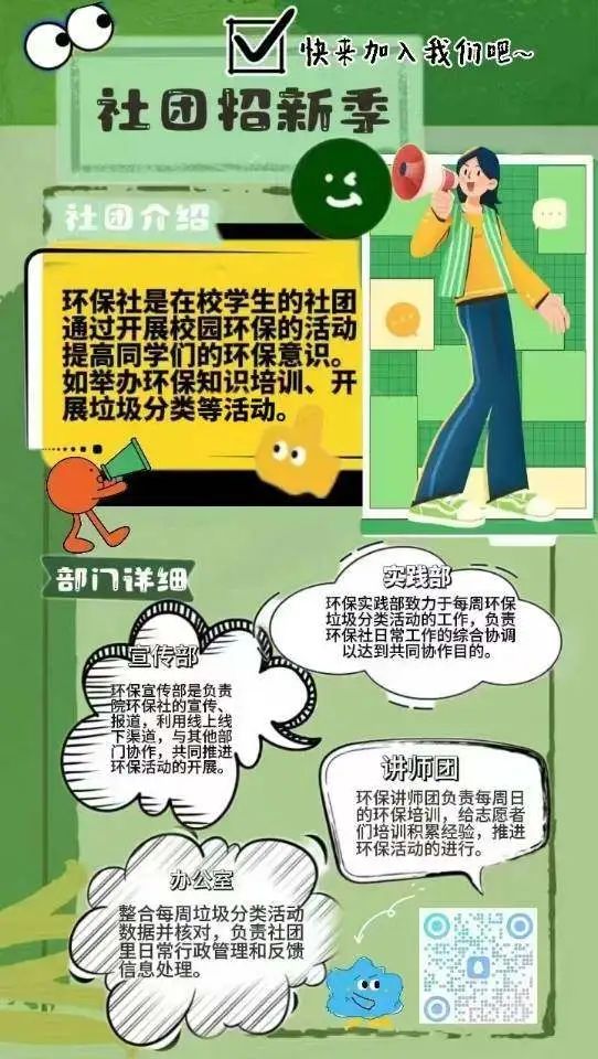环保社,一个致力于环境保护与可持续发展的学生组织,作为校园内一股积极向上的力量,致力于提升全校师生的环保意识,倡导绿色生活,促进校园及社会的可持续发展。我们秉承“绿色校园,你我共建;美丽地球,未来可期”的宗旨,积极倡导并实践绿色、低碳、循环的生活方式,每年通过一百多场实践活动与环保知识理论学习,激发同学们对环境保护的热情,培养责任感和行动力,共同为守护地球家园贡献力量。