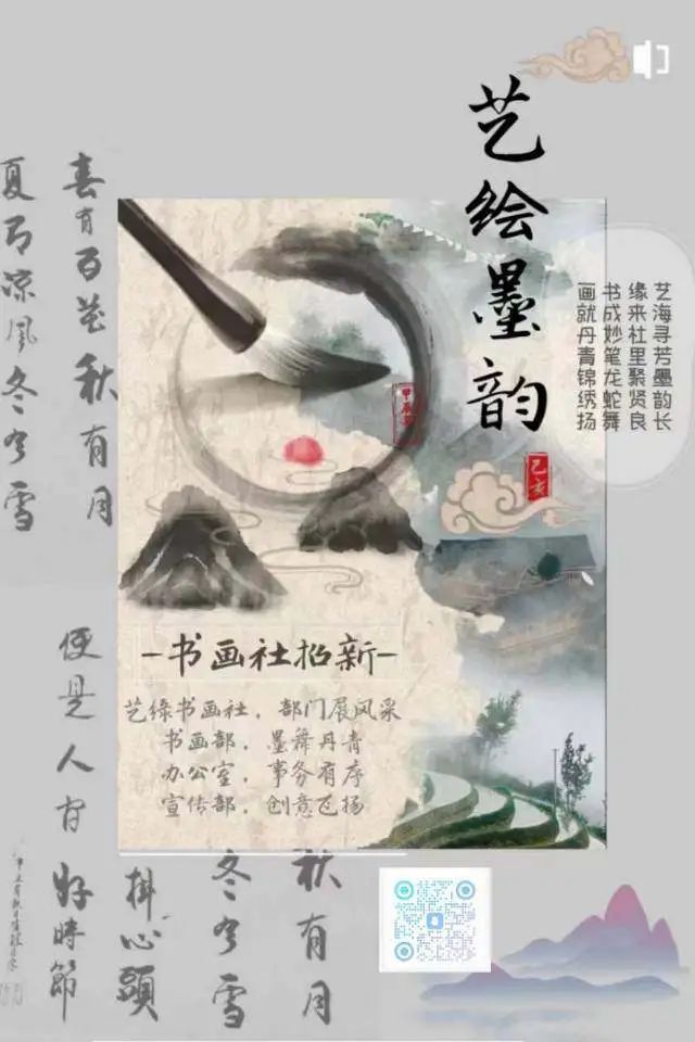 艺缘书画社,乃艺术之佳境。于此,可纵情挥毫泼墨,以画笔勾勒心中绮梦,以书法抒写生活诗意。社团配有专业指导老师,定期举办书画讲座与创作活动,还有优秀的学长学姐,助力你在学习中稳步提升技艺。不论你是初涉绘画的萌新,还是书法领域的高手,艺缘书画社团皆热忱欢迎你的加入。9 月 19 日,正心广场,我们翘首以盼,一同踏上书画艺术之旅,让生活因书画而绽放璀璨光彩。