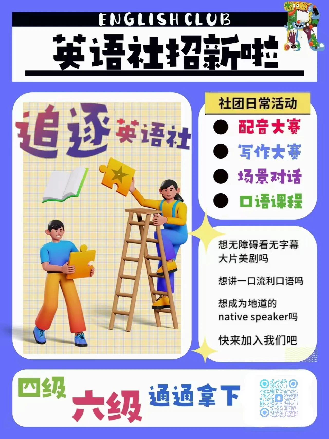 快来英语社,一起开启精彩的英语学习之旅,绽放属于你的光彩。