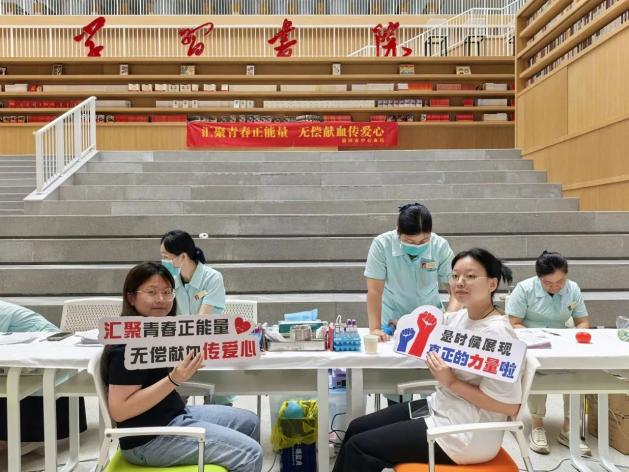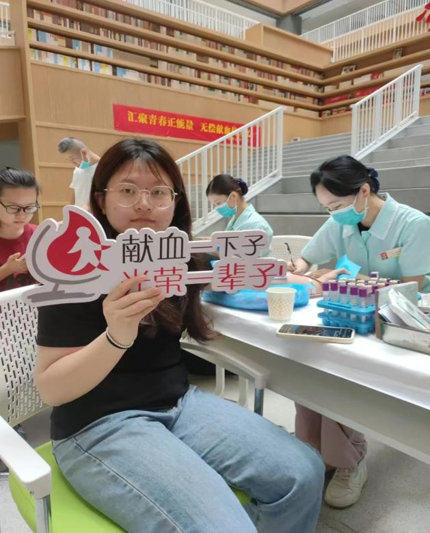 活动现场,图书馆内布置温馨,充满着浓浓的爱心氛围。前来献血的学生们在志愿者的引导下,认真填写献血登记表,市中心血站工作人员耐心地解答同学们的疑问,介绍献血的注意事项和流程。在体检区,医护人员仔细地为每一位同学进行身体检查,确保献血者的身体状况适合献血。