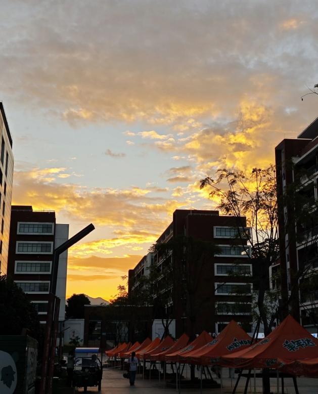夕阳印着同学们的归来背影将影子拉的好长好长,